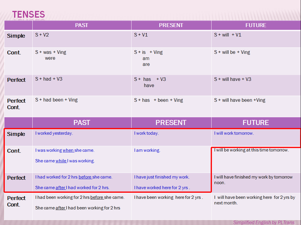 Tenses ที่ใช้บ่อยจริง ๆ จะมี 7 Tenses ที่ตีกรอบสีแดงในรูปค่ะ