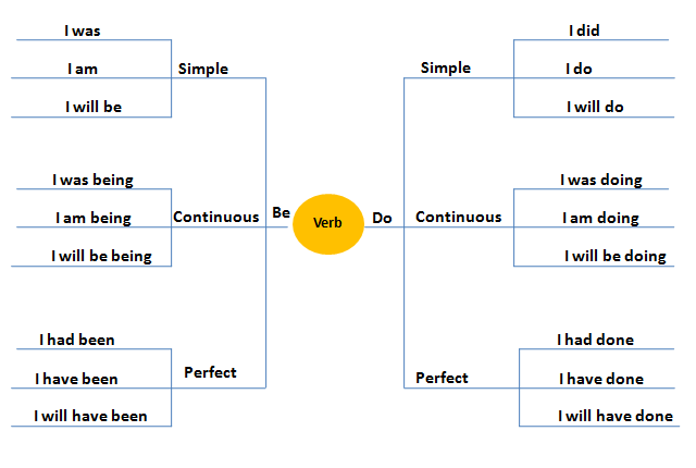 ภาพรวมของ tense ในรูปแบบของ mind map เพื่อให้ง่ายต่อการจดจำค่ะ